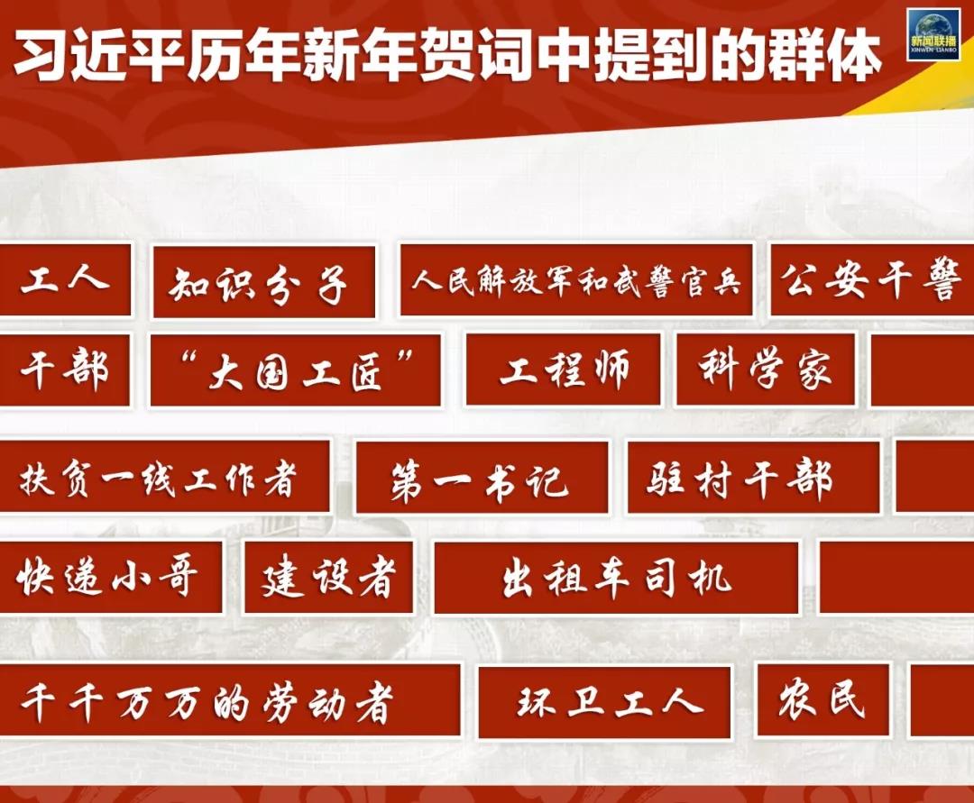 不僅是為人民點贊,習主席在6篇新年賀詞中也提到了一些具體的名字,并為一些群體點贊——